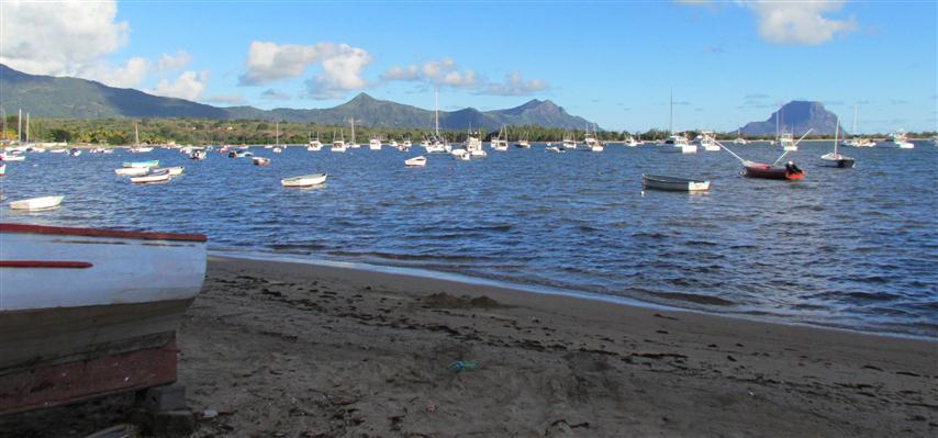 It is a sheltered anchorage, with good holding. Dinghy tie up and facilities are courtesy of the Le Morne Anglers club in the